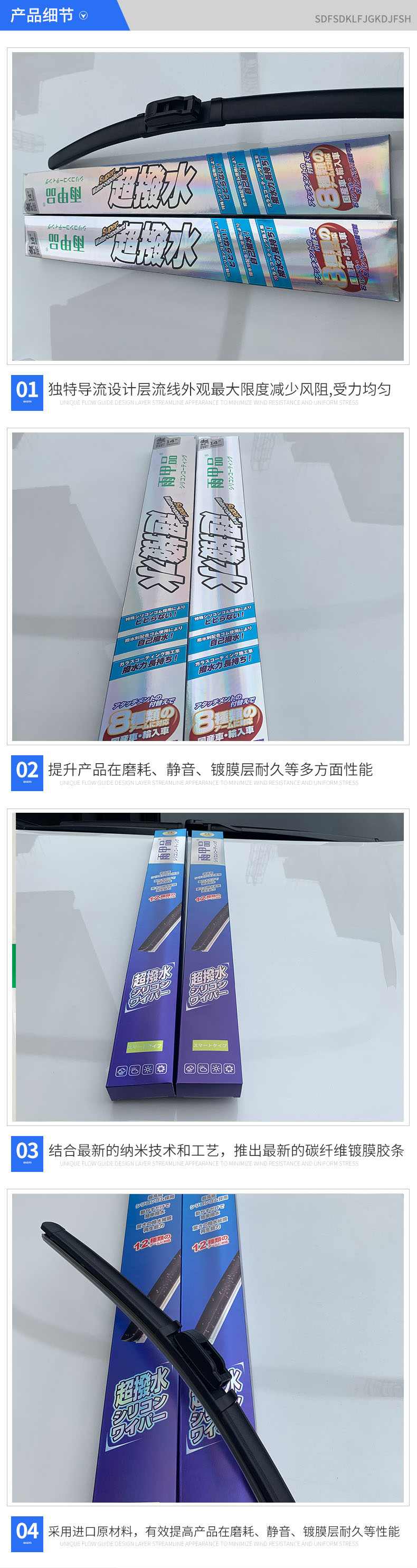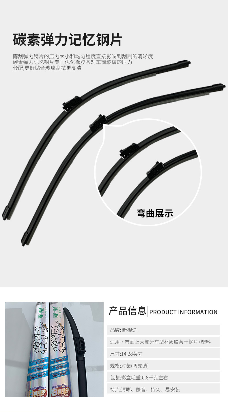 新視途汽車配件有限公司針對汽車售后市場,潛心專業(yè)專注的研究硅膠鍍膜技術(shù),專注改良、開發(fā)多款配方和工藝,多年來根據(jù)不同雨刷款型的需要,推出多系列通用和專用鍍膜膠條,目前結(jié)合最新的納米技術(shù)和工藝,再次推出最新的碳纖維鍍膜膠條,且采用德國進(jìn)口原材料,有效提高產(chǎn)品在磨耗、靜音、鍍膜層耐久等性能,是普通雨刷數(shù)倍。